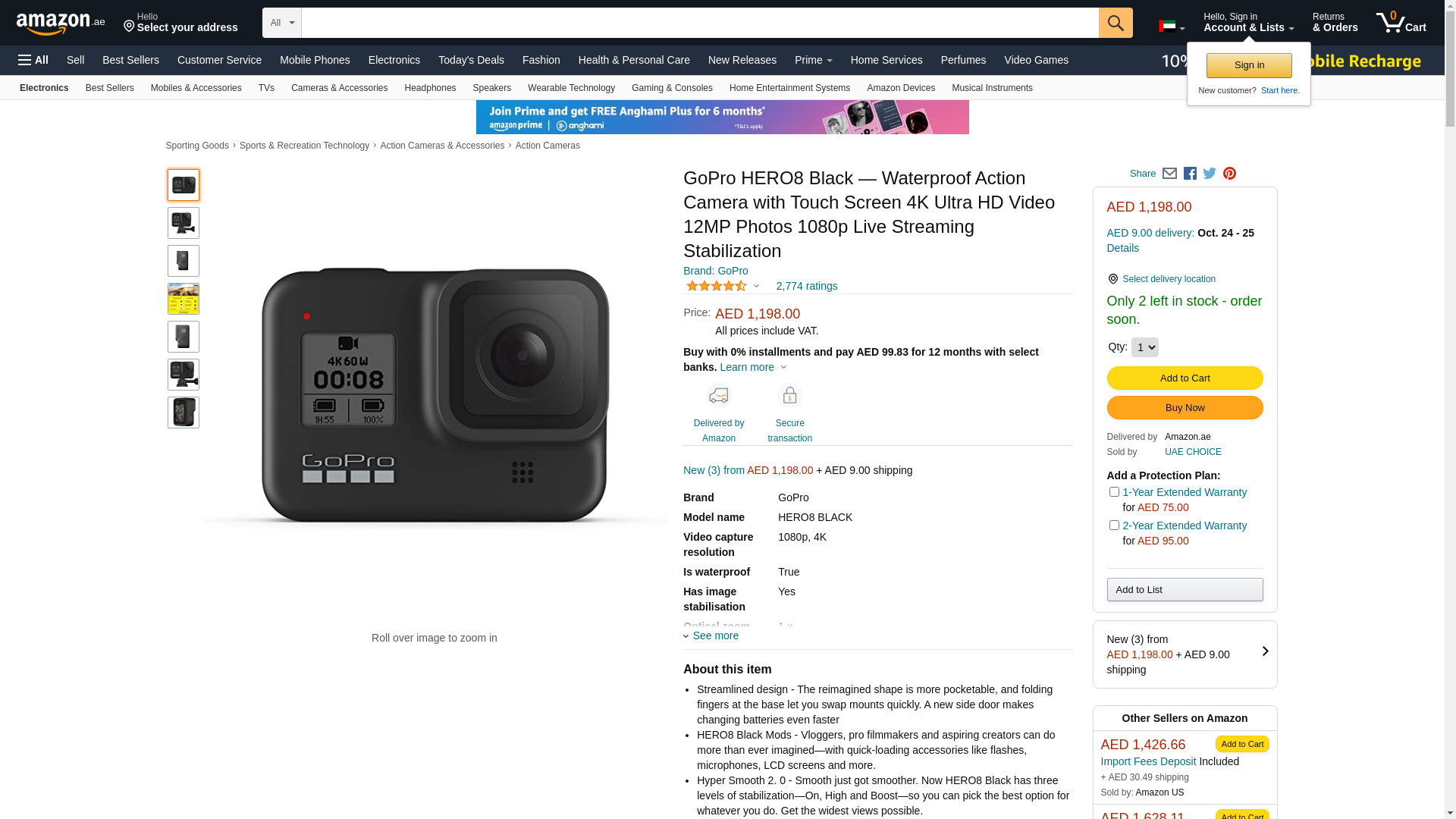 GoPro augments its already impressive action camera line with the HERO8 Black, the versatile next-generation action cam designed to capture smooth, stable footage of your latest adventure, from a simple boat trip to a wild jump-off-a-mountain ride. The HERO8 Black features updated HyperSmooth 2.0 stabilization to produce smooth, gimbal-like movement at all supported frame rates, without the need for a gimbal. Additional updates include a sleeker physical design with a ""folding fingers"" type base for fast mounting, a redesigned battery door for quicker battery changes, a lens with twice the impact resistance as the HERO7, an optional Battery Mod for nearly 2.5x more battery life, an optional flip-up Display Mod to make viewing your frame easier, an optional LED Light Mod, and an optional Media Mod to expand your accessory possibilities. Manufacturer Included Items: GoPro HERO8 Black<br/>Rechargeable Battery<br/>Curved Adhesive Mount<br/>Mounting Buckle<br/>Thumbscrew<br/>USB-C Cable<br/>Limited 1-Year Warranty Bundle Items Include:<br/><br/>2 x GoPro HERO8 Black<br/>2 x Chest Strap<br/>2 x Bicycle Handlebar<br/>2 x Handheld Monopod<br/>2 x Head Strap Mount<br/>2 x Helmet Strap Mount<br/>2 x Microfiber Cloth<br/>2 x Collection Carrying Case