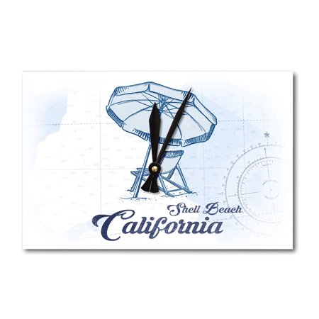 Shell Beach, California - Beach Chair and Umbrella - Blue - Coastal Icon (Acrylic Wall Clock)