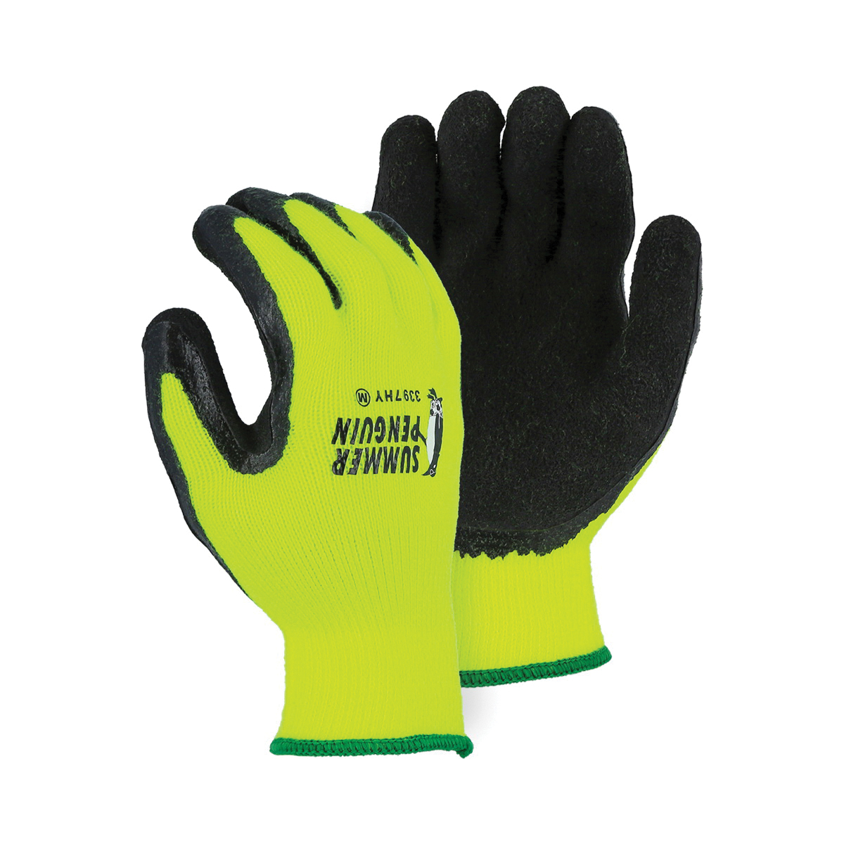 Majestic Glove 3397HY/10 Industrial Gloves, Rubber Palm, Knit, Large, Black/Yellow (Pack of 12)
