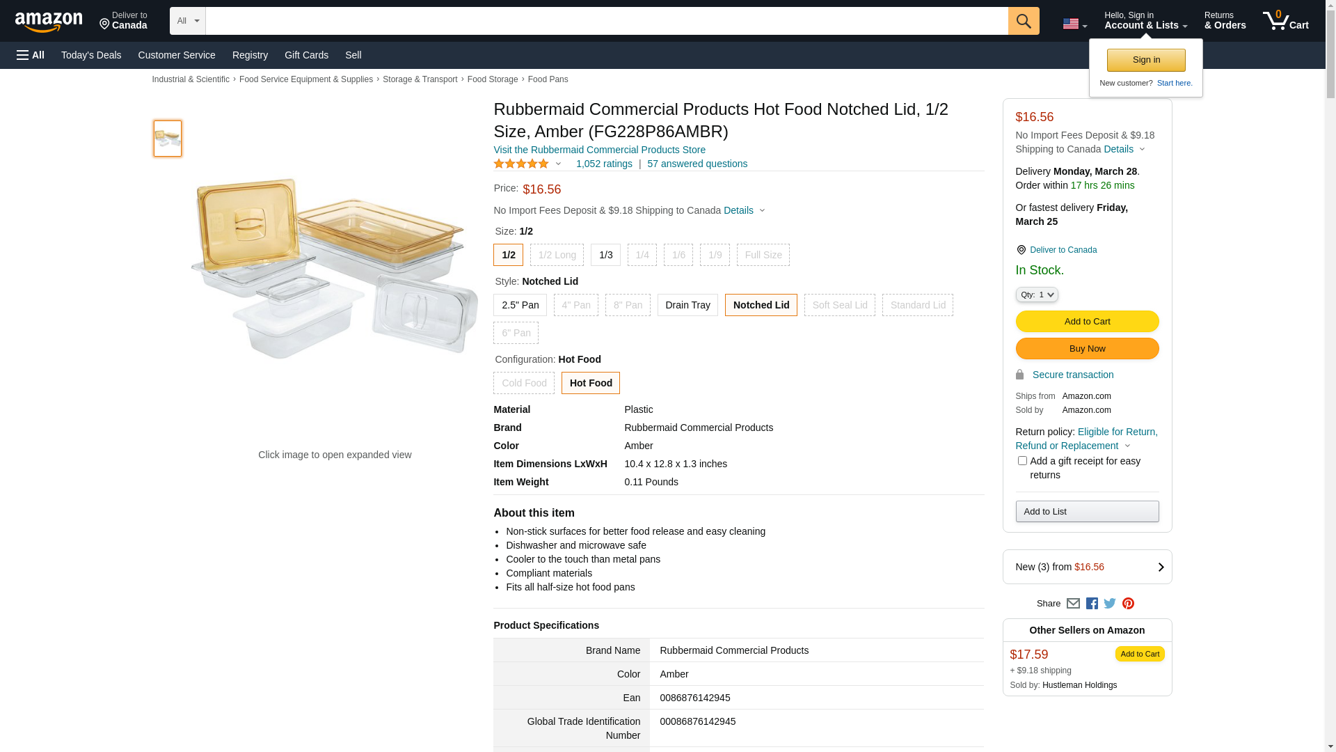 Rubbermaid Commercial Products Hot Food Notched Lid, 1/2 Size, Amber (FG228P86AMBR)