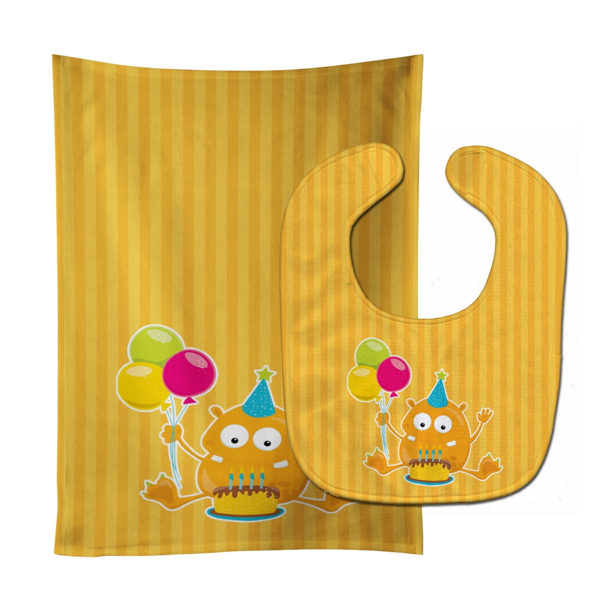 Carolines Treasures BB8933STBU Birthday Monster Orange Baby Bib & Burp Cloth