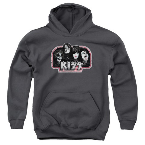 Trevco Kiss-Throwback Youth Pull-Over Hoodie, Charcoal - Small