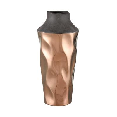 The Lewis Vase is a cylindrical vase which tapers into a small mouth opening made from matte stone. The body is made from polished copper which is twisted with an overscale ripple effect.