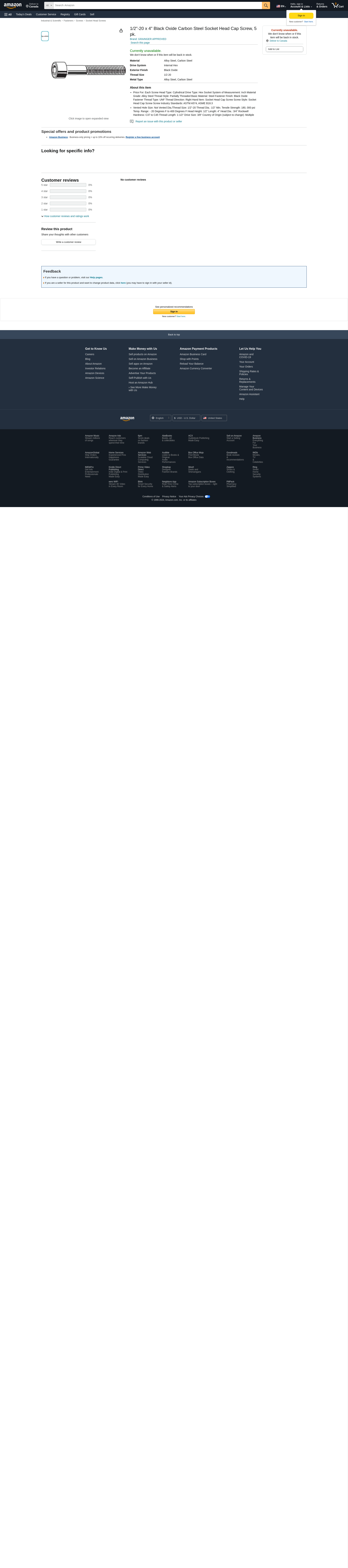 'Socket Head Cap Screw, System of Measurement Inch, Cylindrical, Basic Material Steel, Material Grade Alloy Steel, 1/2 In.-20, Length 4 In., Fastener Finish Black Oxide, Fastener Thread Type UNF, Drive Type Hex Socket, Drive Size 3/8 In., Thread Style Partially Threaded, Thread Direction Right Hand, Thread Length 1-1/2 In., Head Height 1/2 In., Thread Dia. 1/2 In., Package Quantity 5'