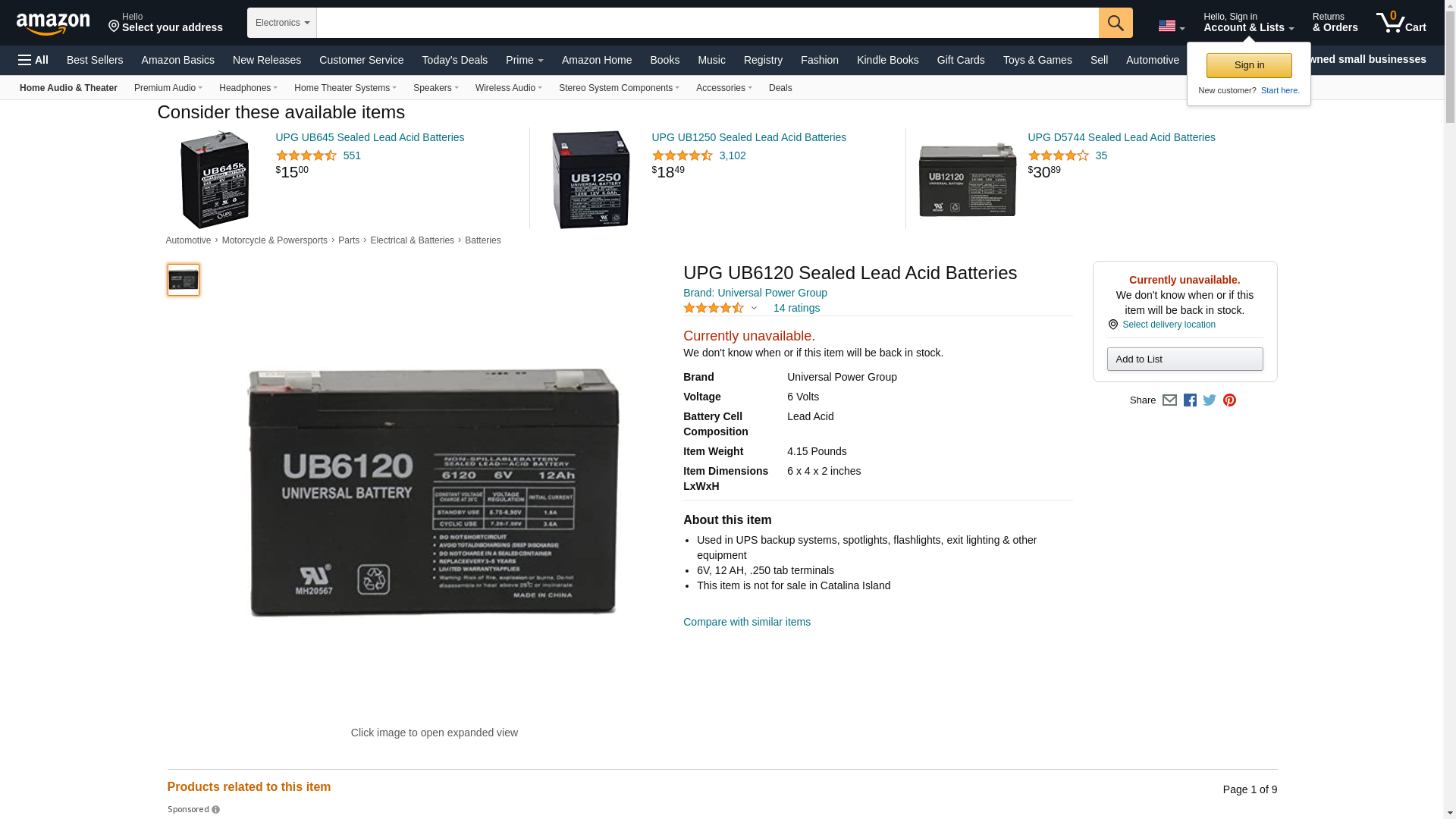 - UPG # D5778 UB6120 6V 12Ah
