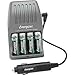 NiMH 15-minute charger with car adapter recharges four AA or AAA NiHM and NiCad batteries for use in only 15 minutes. Built-in safety timer and temperature sensor individually monitors cells condition and terminates charging current when charged. Trickle charge prevents losing charge level from self-discharge or storage and keeps batteries at full capacity. Charge status LED indicator alerts you when batteries are ready. Energy Star qualified.