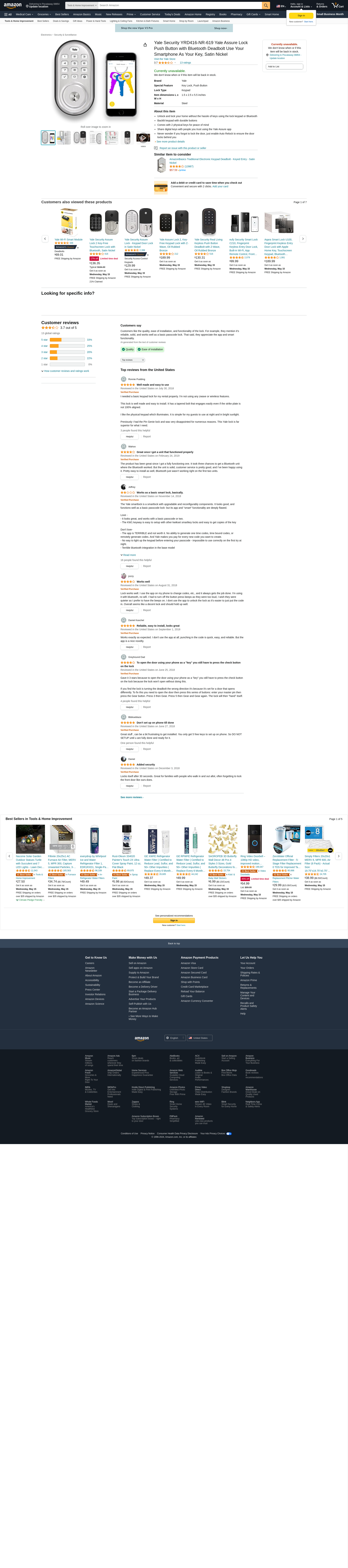 Yale Security YRD416-NR-619 Yale Assure Lock Push Button with Bluetooth Deadbolt Use Your Smartphone As Your Key, Satin Nickel
