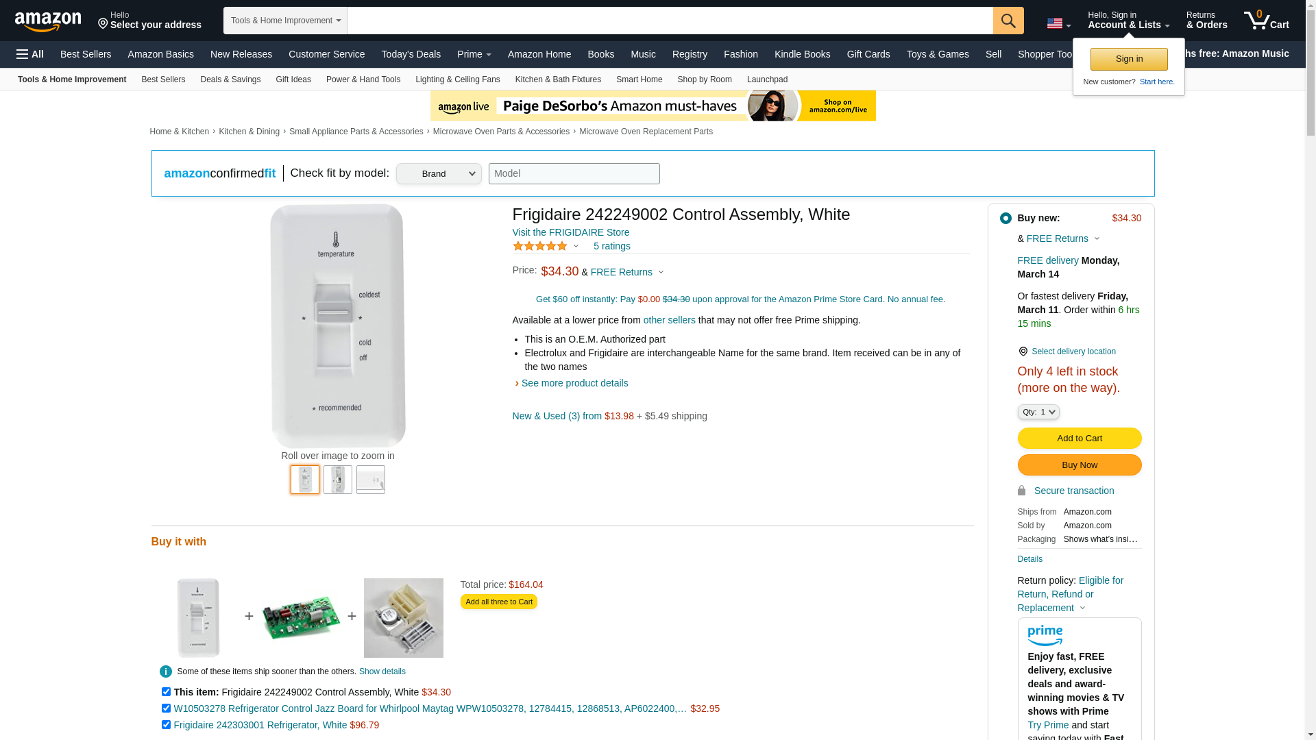 ![]() midwestapplianceparts.com | 242249002-WCI-P | 1 | -2 | 1 | 1 @ $114.99 |