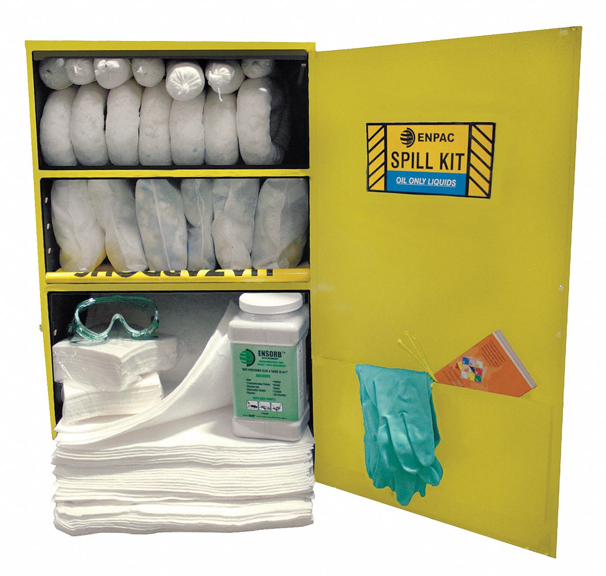 - Includes: (1) XL Wall Locker, (1) Gallon Jug ENSORB, (50) Oil Only Absorbent Pads, (6) Oil Only Pillows, (7) Medium Oil Only Socks