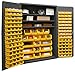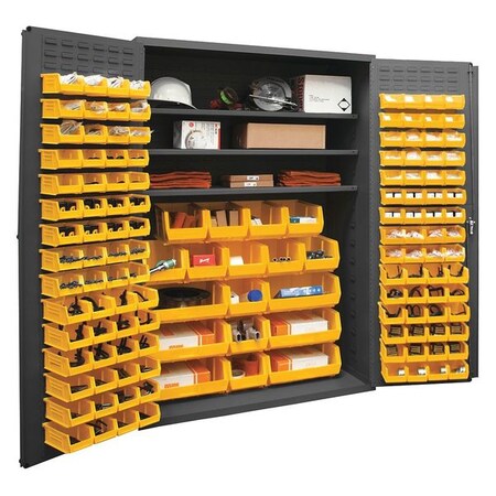 Durham 2502-138-3S-95 Lockable Cabinet with 138 Yellow Hook-On Bins, 3 Adjustable Shelves, Flush Door Style, 48" Wide, 16 Gauge, Gray