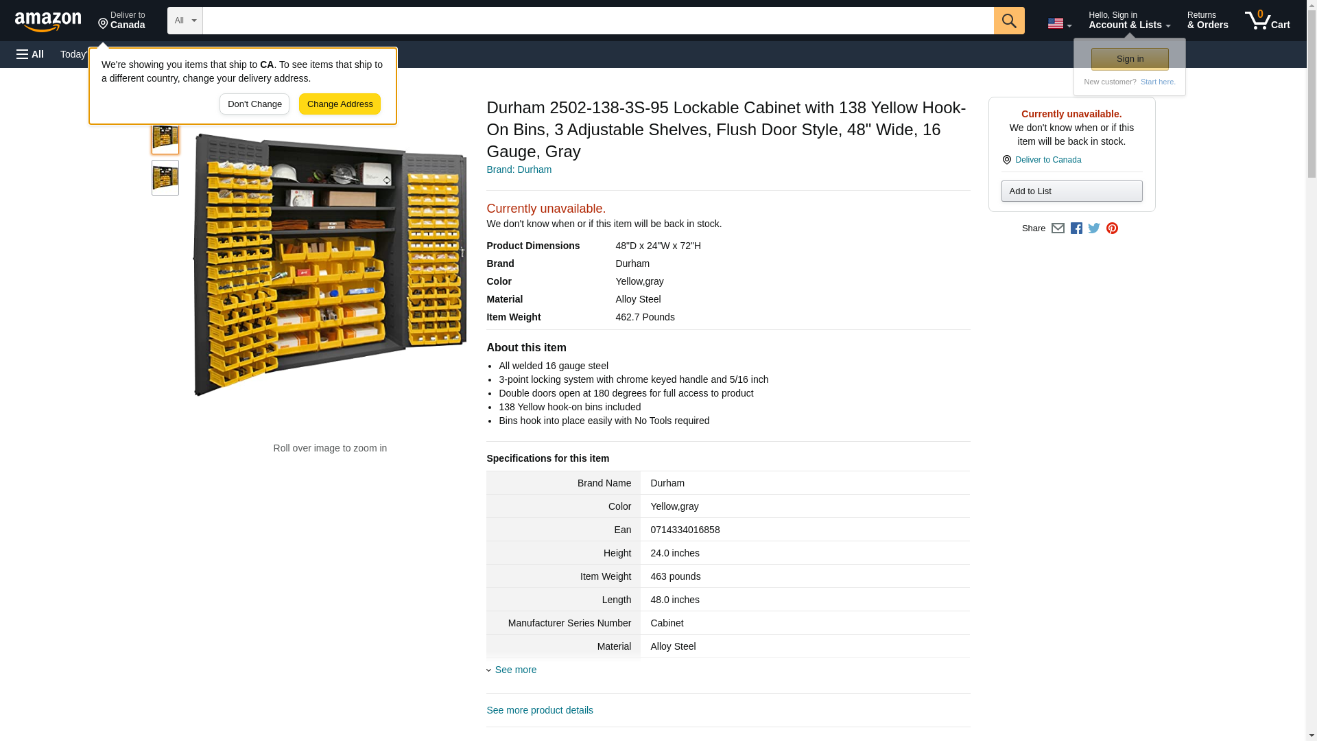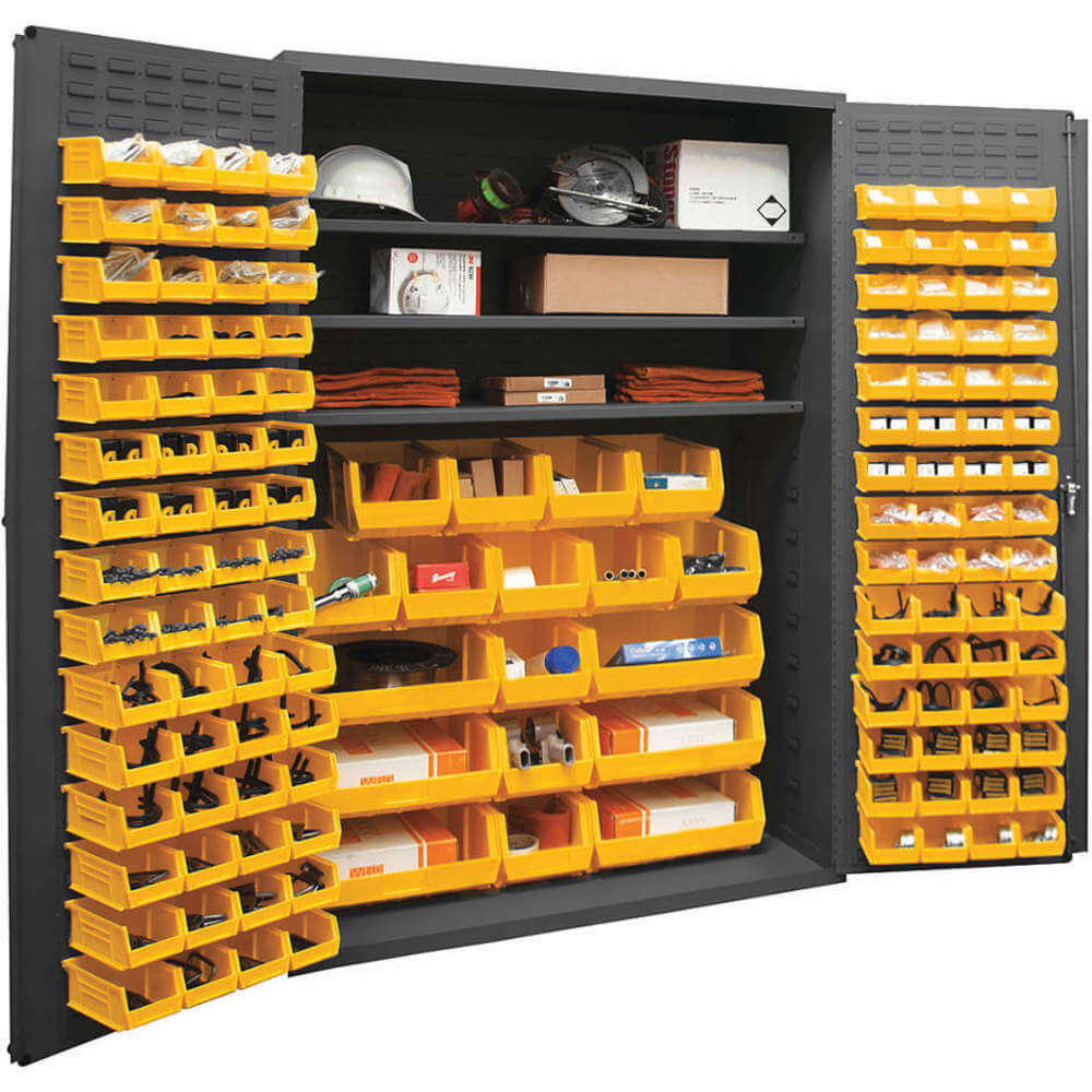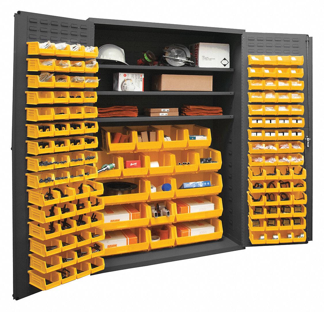 Toolschest.com|Toolschest.com. Durham 2502-138-3S-95 48 in. 16 Gauge Flush Door Style lockable Storage Cabinets with 138 Yellow Hook on Bins & 3 Adjustable Shelves, Gray