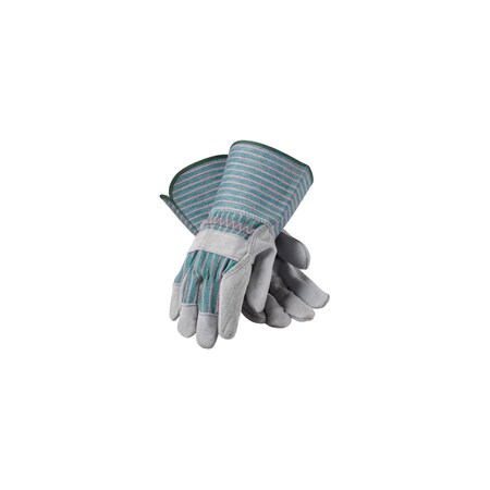 PIP 83-6663/L B Grade Shoulder Split Cowhide Leather Palm Glove with Fabric Back, Rubberized Gauntlet Cuff