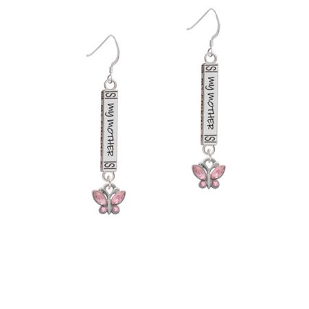 Imitation Rhodium Plated Mini Butterfly with Pink Resin Wings & Pink Crystals - 4 Sided Always My Mother Forever My Friend Message Bar French Earrings. Imitation Rhodium Plated Charms. Charm size is approx. 0.41 x 0.43 x 0.11 inches (HxWxD) including loop. Message Bar is approx: 1.33 x 0.18 x 0.18 inches (HxWxD). Sterling Silver French Ear Wires are 25mm long. Earrings come with small rubber earnuts and are carded in a small jewelry box. Also available in many popular themes. Search Delight & Co. Earrings to see all available styles. These bars show belief in the motivational or sentimental messages to the wearer. Makes a great gift! Featured jewelry is an exclusive Delight & Co. design. We are a family owned company for over 35 years in the U.S.A. PLEASE NOTE: Our products are lead safe, but are not intended for children 14 years and younger.