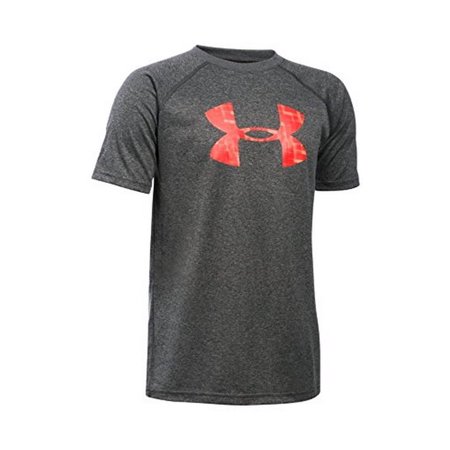 Under Armour Boys UA Tech Big Logo SS, Carbon Heather-Volcano-Blaze Orange, YMD