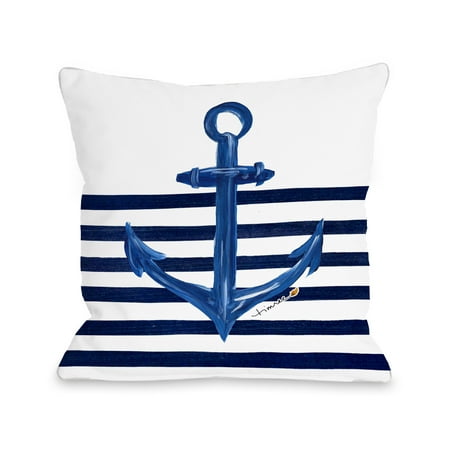 Anchor Half Stripe - White Gold 18x18 Pillow by Timree