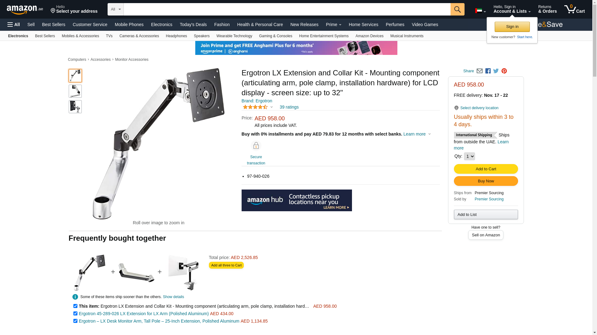 Ergotron LX mounting component - Patented Constant Force Technology - for L