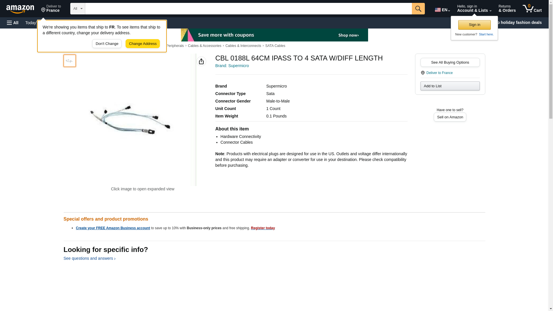 | Feature | Supermicro CBL-0188L 2feet IPASS To 4x SAS/SATA Cable |