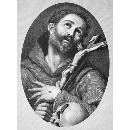 St Francis Of Assisi N(1182-1226) Italian Friar And Preacher Line Engraving 19Th Century Rolled Canvas Art - (18 x 24)
