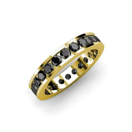 <ul> <li>2.86 ct tw to 3.36 ct tw Treated Black Round Diamond Channel Set Eternity Band in 14K Yellow Gold.</li> <li>Gemstones may have been Treated to Improve their Appearance or Durability & may Require Special Care.</li> <li>The Natural Properties & Composition of Mined Gemstones define the Unique Beauty of each Piece. The Image may show Slight Differences to the Actual Stone in Color & Texture.</li> <li>All our Diamonds to our Best Knowledge are not Conflict Diamonds.</li> </ul>