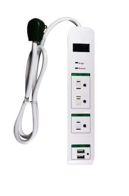 GoGreen Power (GG-13103USB) 3 Outlet Surge Protector with 2 USB Ports, White, 3 ft Cord