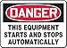 DANGER THIS EQUIPMENT STARTS AND STOPS AUTOMATICALLY
