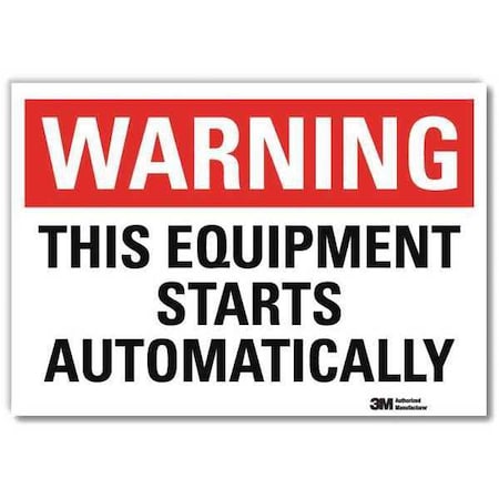 Warning Sign, Horizontal Rectangle, Number of Printed Sides 1, English, Sign Format Traditional OSHA, Sign Legend This Equipment Starts Automatically, Sign Legend Background Color White, Sign Legend Style Text