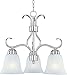 Maxim Lighting Basix Collection 3-Light mini chandelier in satin nickel finish, features steel construction. The ice glass shade brings elegance to the home. This chandelier uses three 60-Watt medium 3450 Lumens incandescent lamps that have voltage rating of 120 Volts. It measures 19 Inch x 18.25 Inch. This chandelier has average life span of 2500 hours to ensure uninterrupted performance. It comes with 36-Inch chain and 180-Inch lead wire for easy installation.