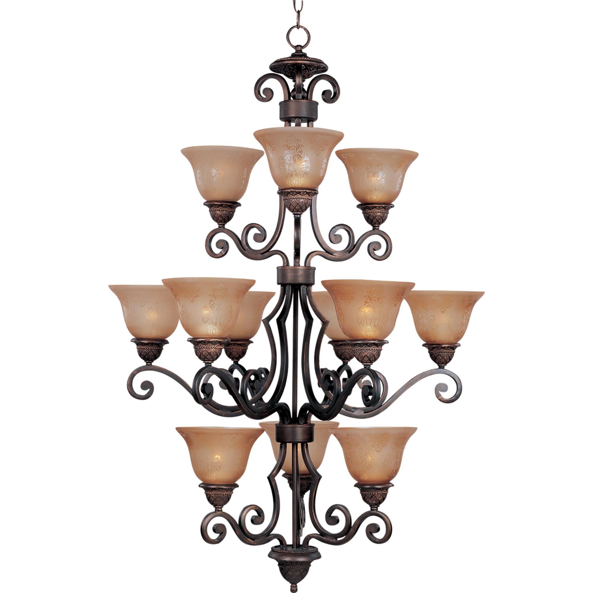 Maxim 11238SAOI Symphony Screen Amber Glass Large Chandelier, 12-Light 720 Total Watts, 46" H x 30" W, Oil Rubbed Bronze