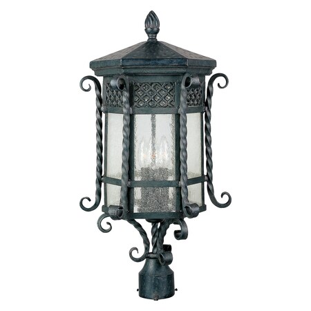 Maxim Lighting 30120CDCF Three Light Country Forge Seedy Glass Post Light, Black