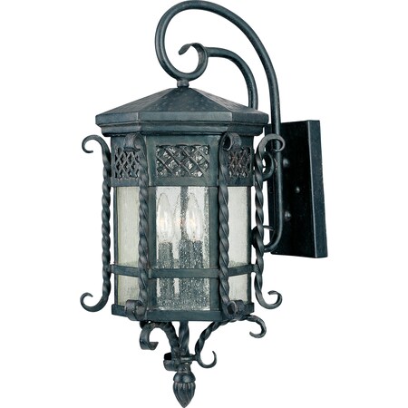 Maxim 30124CDCF Scottsdale Mediterranean Style Seedy Glass Outdoor Wall Sconce, 3-Light 120 Total Watts, 24"H x 12"W, Country Forge