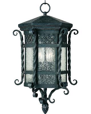 Maxim 30128CDCF Scottsdale Mediterranean Style Seedy Glass Outdoor Pendant Ceiling Light, 3-Light 120 Total Watts, 21"H x 11"W, Country Forge