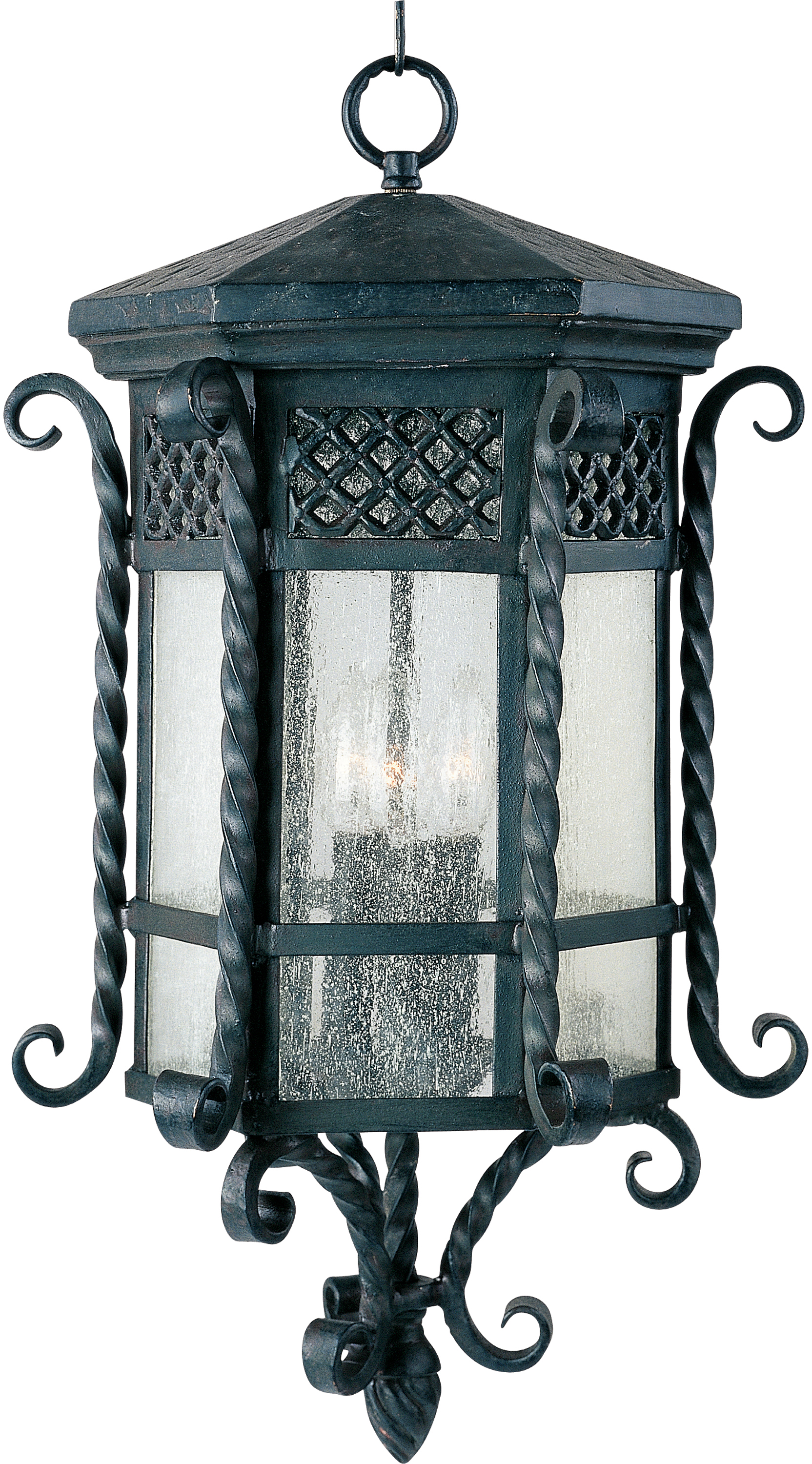 Scottsdale Collection - 12 1/2" 3-Light Outdoor Hanging Lantern in Country Forge with Seedy Glass by Maxim Lighting - 30129CDCF | MyKnobs