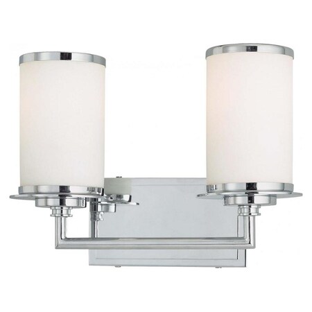 This Two Light Vanity has a Chrome Finish and is part of the Glass Note Bath Collection.