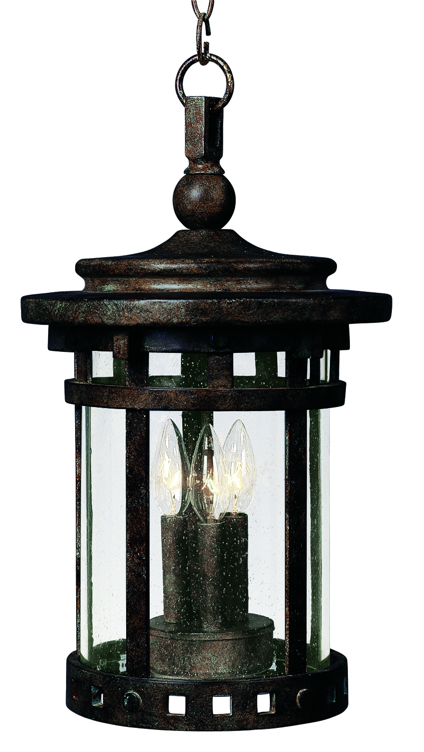 Maxim 40039CDSE Santa Barbara VX Heavy Duty Outdoor Pendant Hanging Lantern, 3-Light 120 Total Watts, 20"H x 11"W, Sienna
