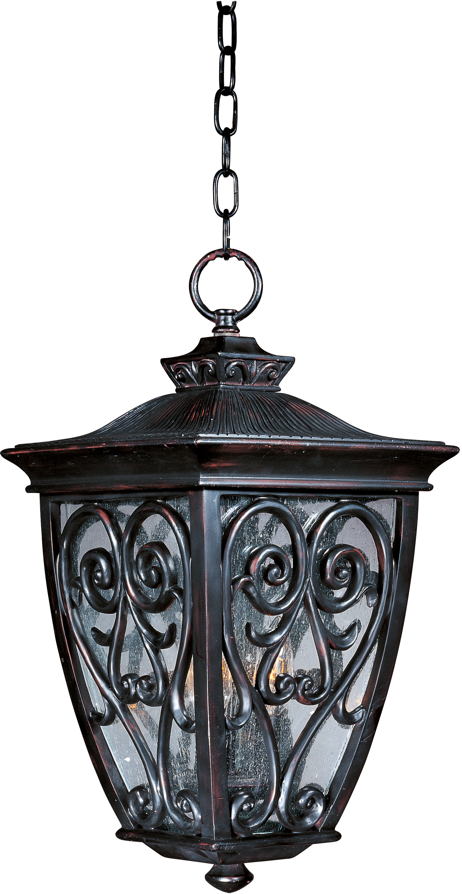 Newbury VX Collection - 11 1/2" 3-Light Outdoor Hanging Lantern in Oriental Bronze with Seedy Glass by Maxim Lighting - 40128CDOB | MyKnobs