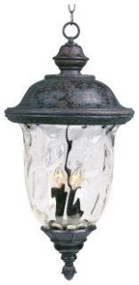 Maxim 40427WGOB Carriage House VX Water Glass Heavy-duty Outdoor Pendant Ceiling Light, 3-Light 120 Total Watts, 25"H x 13"W, Oriental Bronze