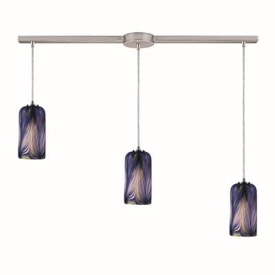Elk Home Molten Mini Pendant - 3-Light in Satin Nickel Finish, with Molten Ocean Glass, Transitional Style