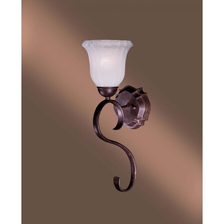 Single Light Wallchiere Wall Sconce from the Marche Collection Features: Etched Marble glass bell shaped shade Designed to cast light in an upward direction Energy efficient Suitable for dry locations Lamping Technologies: Bulb Base - GU24: The GU24 bulb base is used with self ballasted twist lock compact fluorescent bulbs and has a pin spread of 24 mm. Compatible Bulb Types: GU24 Bulb base uses primarily a Fluorescent bulb but is also available as Halogen, LED, and Xenon / Krypton. Specifications: Number of Bulbs: 1 Bulb Base: GU24 Bulb Type: Compact Fluorescent Bulb Included: Yes Watts Per Bulb: 13 Wattage: 13 Voltage: 120 Height: 18" Width: 5.75" Extension: 6.75" Energy Star: No ADA: No As part of the Minka Group, Minka Lavery has created a reputation of being a trendsetter in developing creative, innovative, and decorative lighting for the discerning designer or homeowner. Pleasing collections of modern, traditional, and transitional lights that will provide inspiration and options in creating your idea of the perfect living space throughout the home. Find the style and size of Minka Lavery indoor wall sconces that will give your home the best combination of form and function possible.
