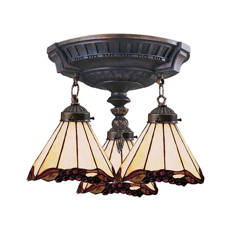 997-AW-03 ELK Lighting Mix-N-Match 3-Light Semi Flush in Aged Walnut with Tiffany Style Glass