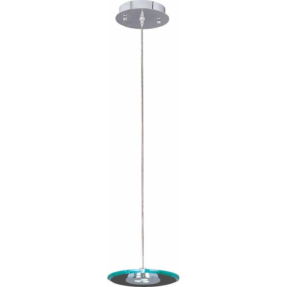 Subtle and sleek, Hagen suspends thin disks of beveled glass from barely visible strands of filament. Each disk holds a cool LED light that plays across the surface of the glass and culminates in a crisp ring of beveled luminescence. In single and four-light pendants, Hagen slips unobtrusively into contemporary, sophisticated settings.,Adjustable: Yes Bulb Included: Yes Bulb Type: LED Bulbs Type: LED California Title 24: Yes Collection: Hagen Energy Star Compliant: No Finish: Polished Chrome Glass: Clear White Height: 6" Max Wattage: 1 Number of Lights: 1 Safely Rating: Dry Type: Single Pendant Weight: 10 Width: 7"