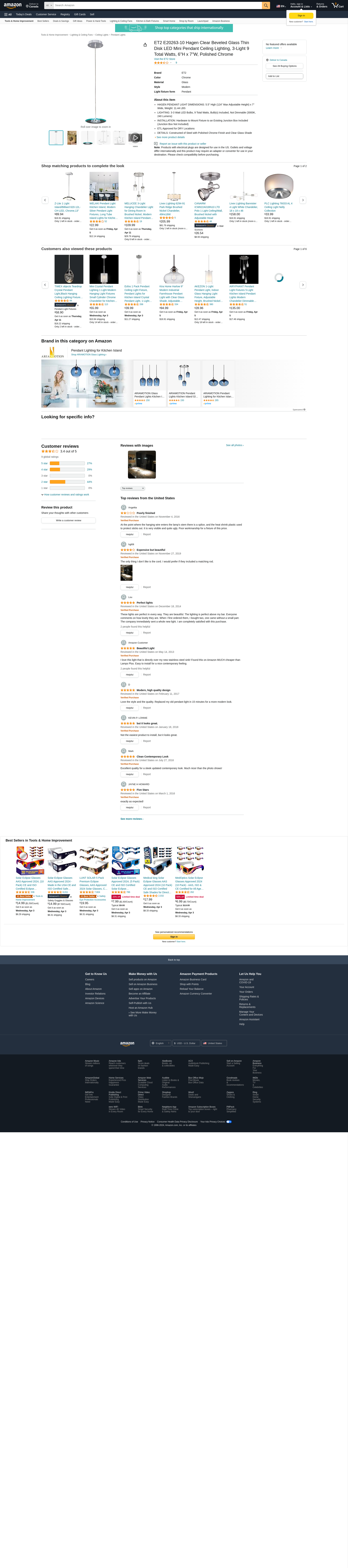 ET2 E20263-10 Hagen Clear Beveled Glass Thin Disk LED Mini Pendant Ceiling Lighting, 3-Light 9 Total Watts, 6" H x 7" W, Polished Chrome