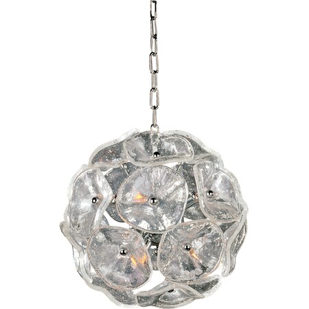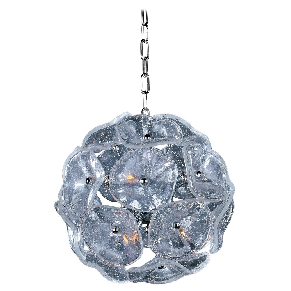 ET2 E22090-28 Fiori Murano Clear Glass Crystal Petal Sphere Pendant Ceiling Lighting, 8-Light Xenon 320 Watts, 12" H x 12" W, Chrome