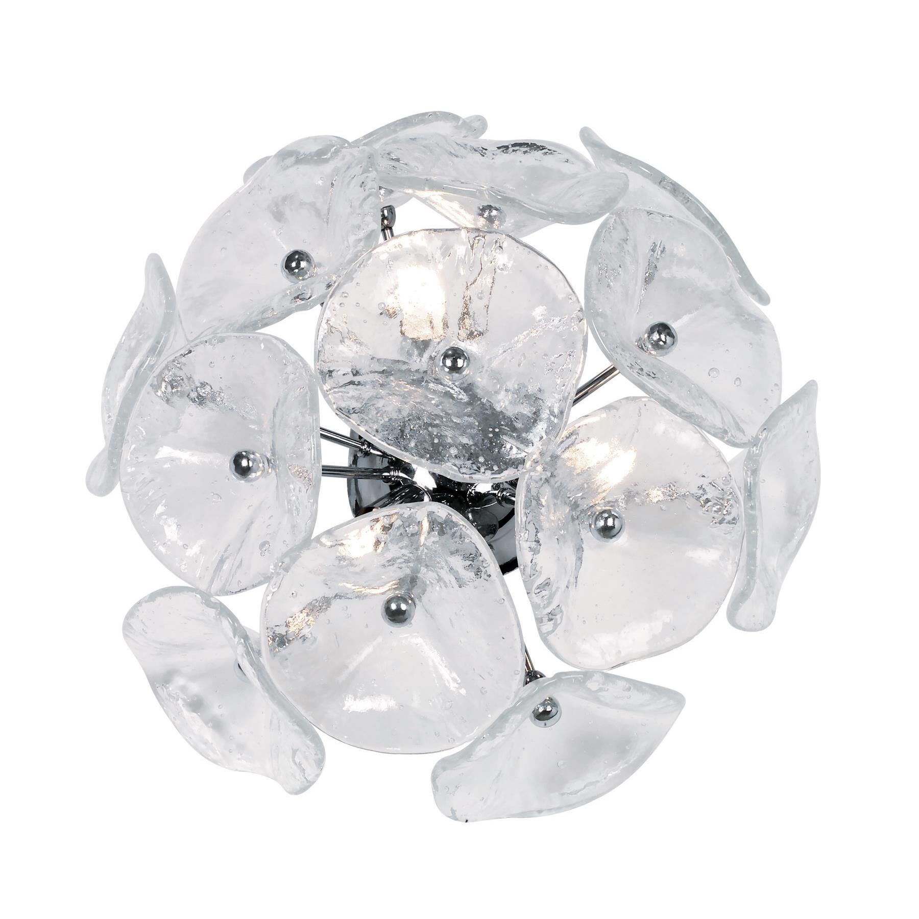 ET2 E22091-28 Fiori Murano Clear Glass Crystal Petal Round Wall Sconce, 3-Light Xenon 120 Watts, 8"H x 14"W, Chrome