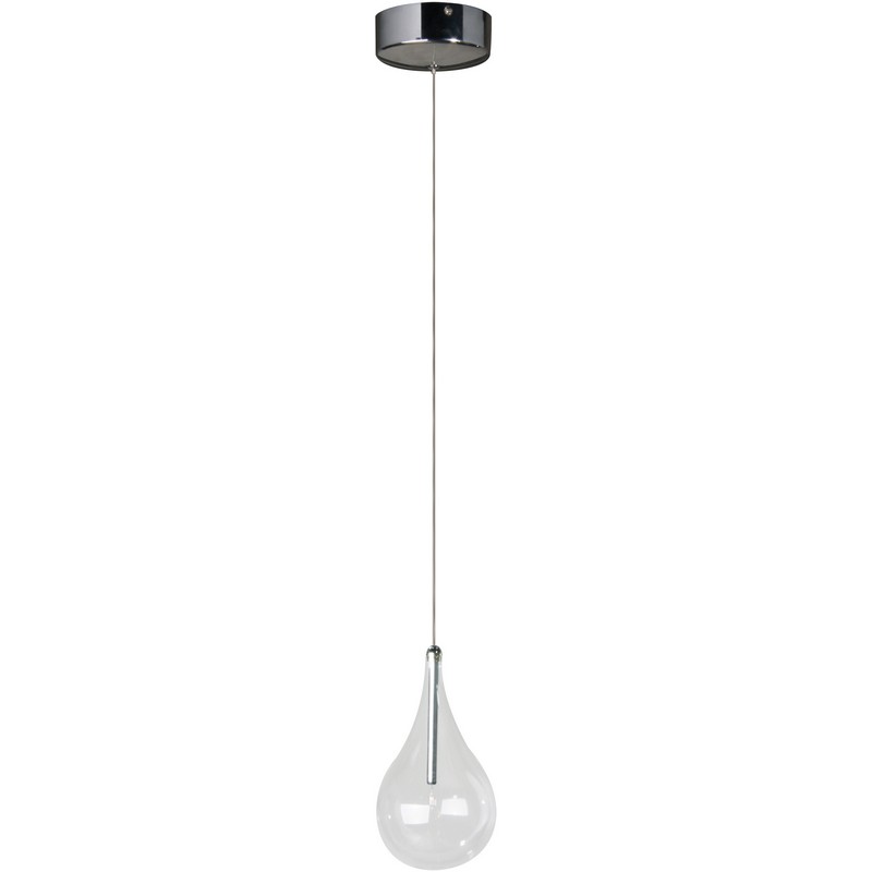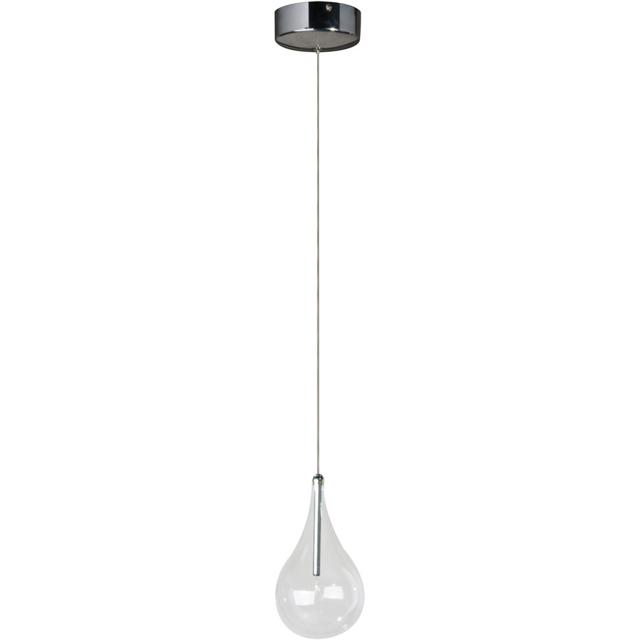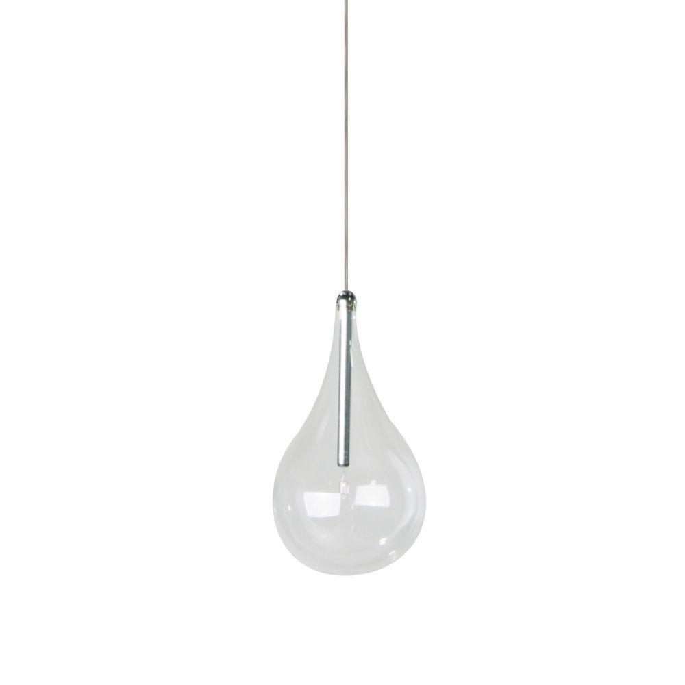 ET2 E23111-18 Larmes One-Light Dimmable Adjustable Height Pendant - Polished Chrome Finish I 2900K I Steel Frame with Clear Glass I Modern Contemporary Indoor Light Fixture I