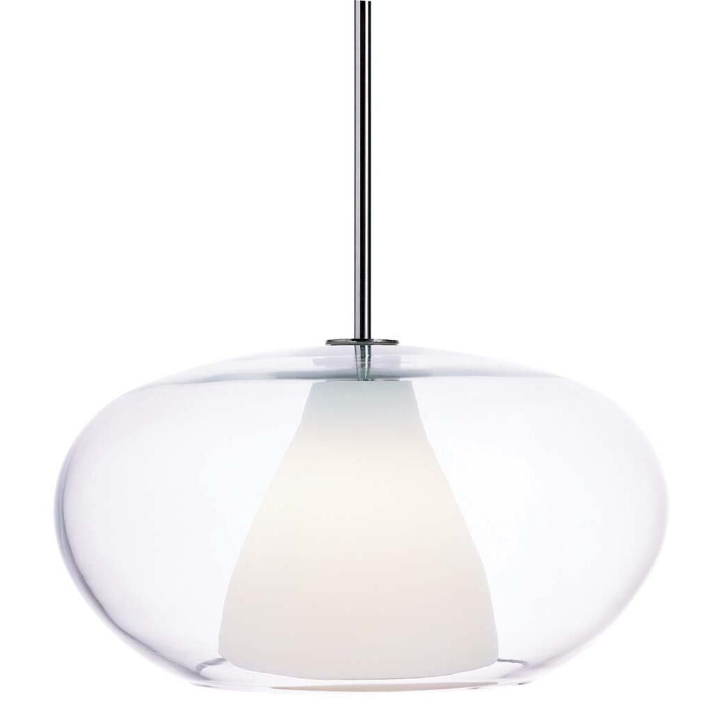This One Light Down Pendant is part of the Soft Collection and has a Chrome Finish and Clear W/white Frosted Glass.