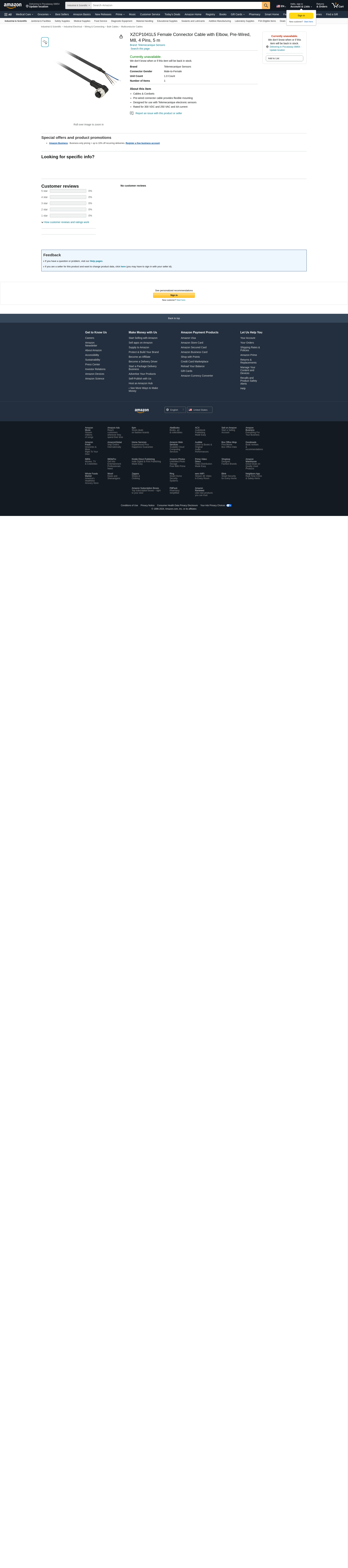 Telemecanique XZCP1041L5 Female Connector Cable with Elbow, Pre-Wired, M8, 4 Pins, 5 m