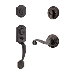Lido Collection - Montara Single Cylinder Handleset with Lido Interior Active Handleset Trim Left Hand Door Lever & Single Cylinder Deadbolt In Venetian Bronze by Kwikset Door Hardware - 553MNHLIP-11PS/978LLRH-11PV1 | MyKnobs