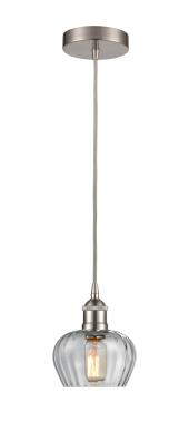 INNOVATIONS 616-1P-SN-G92-LED 1-Light Mini Pendant Brushed Satin Nickel. Collection: Edison. Style: Art Nouveau, Industrial, Restoration-Vintage, Transitional. Metal Finish: Brushed Satin Nickel. Metal Finish (Canopy/Backplate): Brushed Satin Nickel. Material: Steel, Cast Brass, Glass. Dimension(in): 7.5(H) x 6.5(W) x 6.5(Dia). Min/Max Height (Fixture Height with Cord or Included Stems & Canopy)(in): 11.25/129.25. Wire/Cord: 10 Feet Of Black Fabric Cord. Bulb: (1)6W Medium Base,Dimmable(Not Included). Maximum Wattage Per Socket: 100. Voltage: 120. Color Temperature (Kelvin): 2700. CRI: 82. Lumens: 600. Glass Shade Description: Clear Fenton. Glass or Metal Shade Color: Clear. Shade Material: Glass. Glass Type: Transparent; Ribbed. Shade Shape: Bowl. Shade Dimension(in): 6.5(W) x 4.5(H). Fitter Measurement (Glass Or Metal Shade Fitter Size): Neckless with a 2.125 inch Hole. Canopy Dimension(in): 4.75(Dia) x 1(H). Sloped Ceiling Compatible: Yes. California Proposition 65 Warning Required: Yes. UL & ETL Certification: Damp Location.