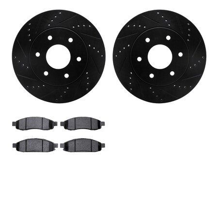 Dynamic Friction Company Front Brake Rotors-Drilled and Slotted-Black with Ultimate Duty Performance Brake Pads 8402-67002