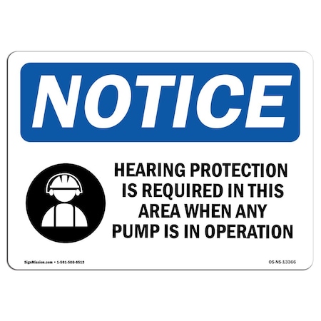 OSHA Notice Sign, Hearing Protection Is Required With Symbol, 14in X 10in Decal